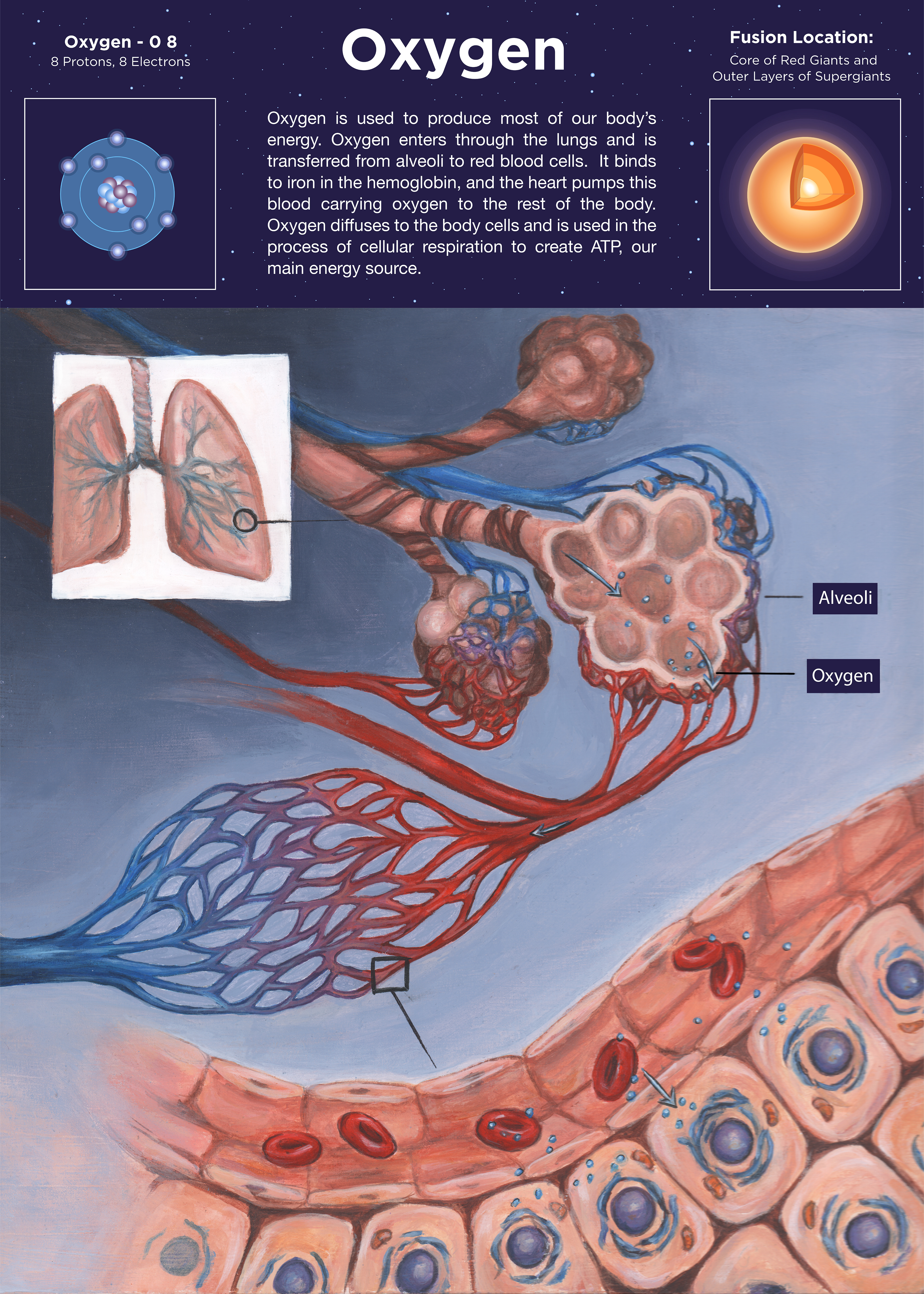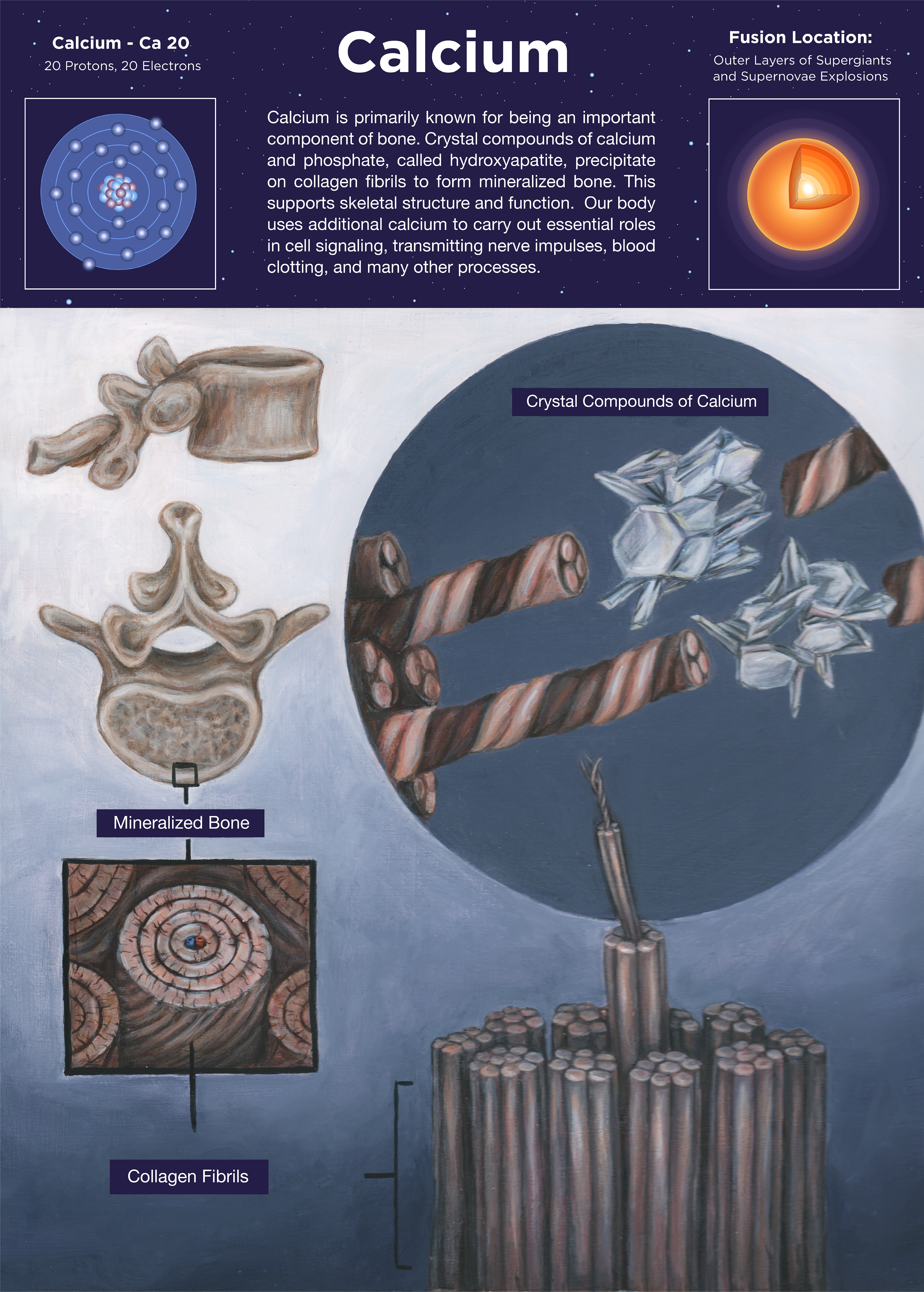 This set of paintings with digital labels was another part of my undergraduate thesis series. These three pieces focus on the role of the elements Oxygen, Iron, and Calcium in the human body.